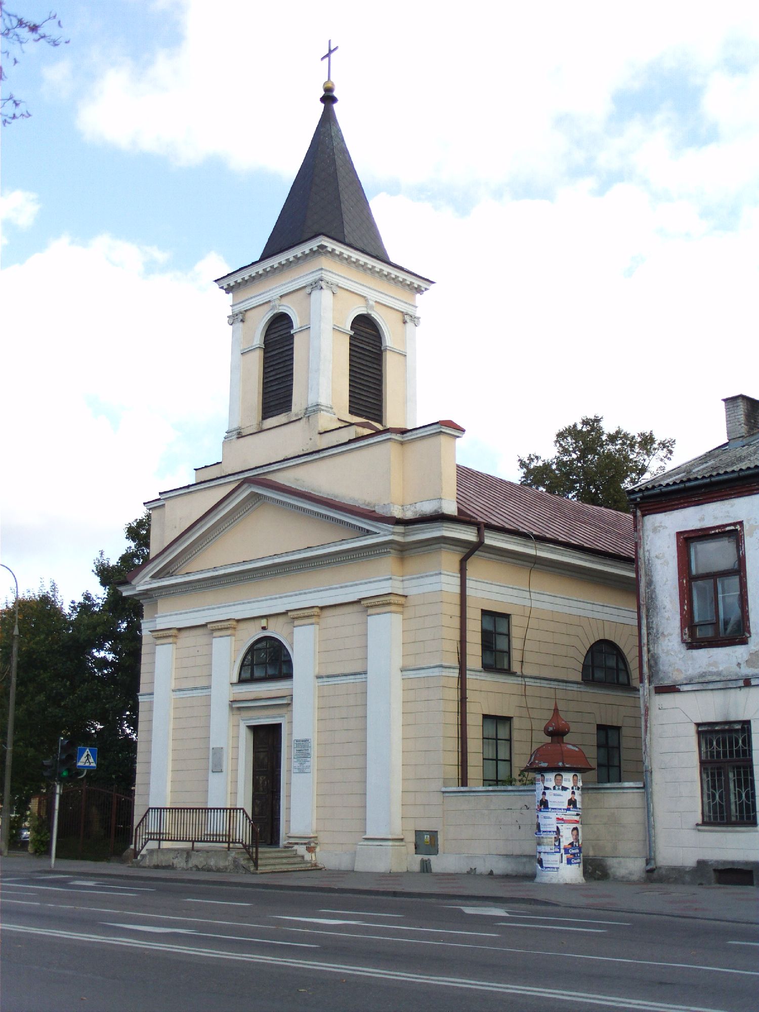 Kościół ewangelicki św. Trójcy w Suwałkach jest jednym z tych miejsc, które najlepiej pokazują, jak bardzo to miasto było i wciąż jest wielowyznaniowe oraz pograniczne. Nie jest tak monumentalny jak katolicka konkatedra, ale za każdym razem, gdy pojawia się w kadrze podczas spaceru ulicą Kościuszki, przyciąga wzrok spokojną, klasycystyczną bryłą i charakterystyczną wieżą z ostrosłupowym hełmem. To świątynia, która przez blisko dwa wieki praktycznie nie zmieniła swojej architektury, ale zmieniała się jej rola i otoczenie – od czasów zaborów, przez wojny, aż po współczesną, niewielką, lecz bardzo żywą wspólnotę luterańską. Wchodząc do środka, ma się poczucie, że to nie tylko zabytek, lecz także wciąż funkcjonujące miejsce modlitwy, w którym historia i codzienność splatają się bardzo naturalnie.